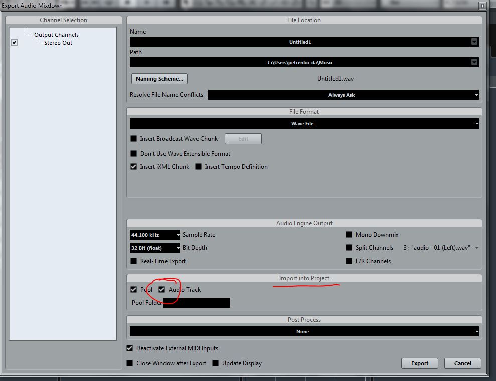 хочу перевести в аудио - не Real Time !!!! - то 95 тактовое построение может загружаться ( Audio mixdown ) до 3-4 минут....