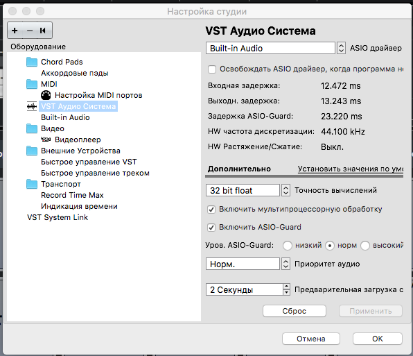Когда я захожу в "VST аудио система" и нажимаю на стрелочку вниз - у меня только одна опция выпадает, built-in audio. У меня, похоже, нет этого драйвера(((((((((