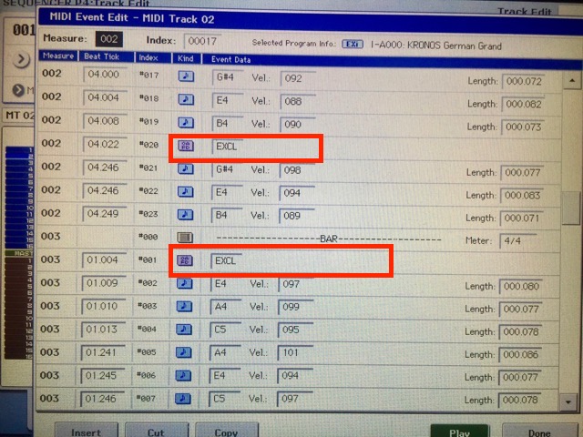 ну вот я сейчас попробовал, они отображаются. Как вариант - выдать дорожку на DAW, там поймать sysex команду, стереть или передвинуть, возвратить в кронос.