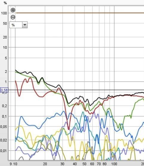 Особенно доставляет то, как работает порт ФИ и держит динамики на минимальном ходе и обеспечивает тем самым средний КНИ от 35Гц до 100Гц на уровне <0.3%.