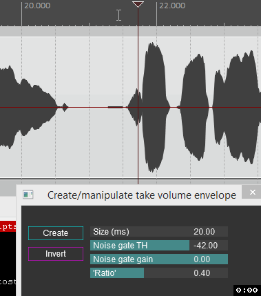 В общем, если бы была возможность хотя бы по RMS-уровню разбивать итем с аудио на сегменты шум/полезный сигнал одной командой, это спасёт кучу времени. "Танцующая" огибающая с кучей точек (как на