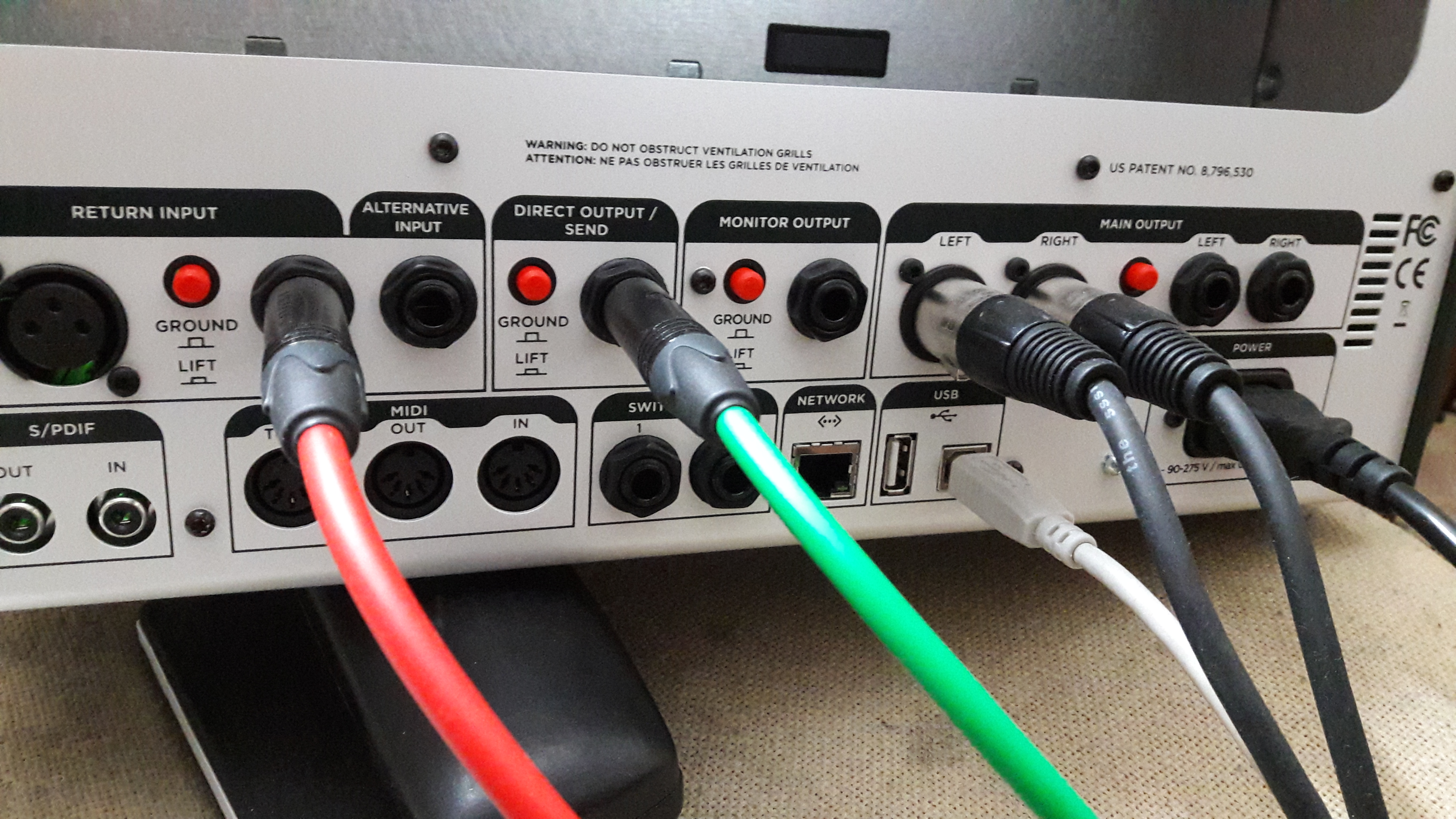 1. FRONT INPUT, ALTERNATIVE INPUT - используются для подключения гитары и имеют высокий импеданс. Для реампинга нужно использовать RETURN INPUT (провод TRS или симметричный XLR) или S/PDIF INPUT.