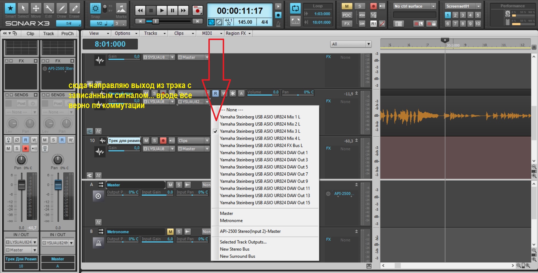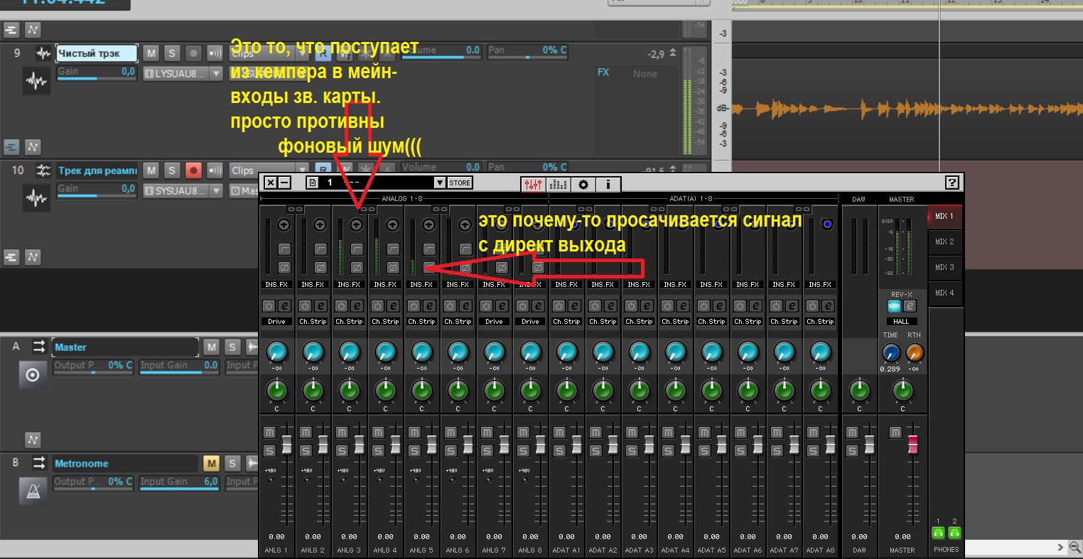 [DOUBLEPOST=1460401686,1460401406][/DOUBLEPOST]вот на всякий случай даже сфотал всю коммутацию... писать пытаюсь через Сонар х3.