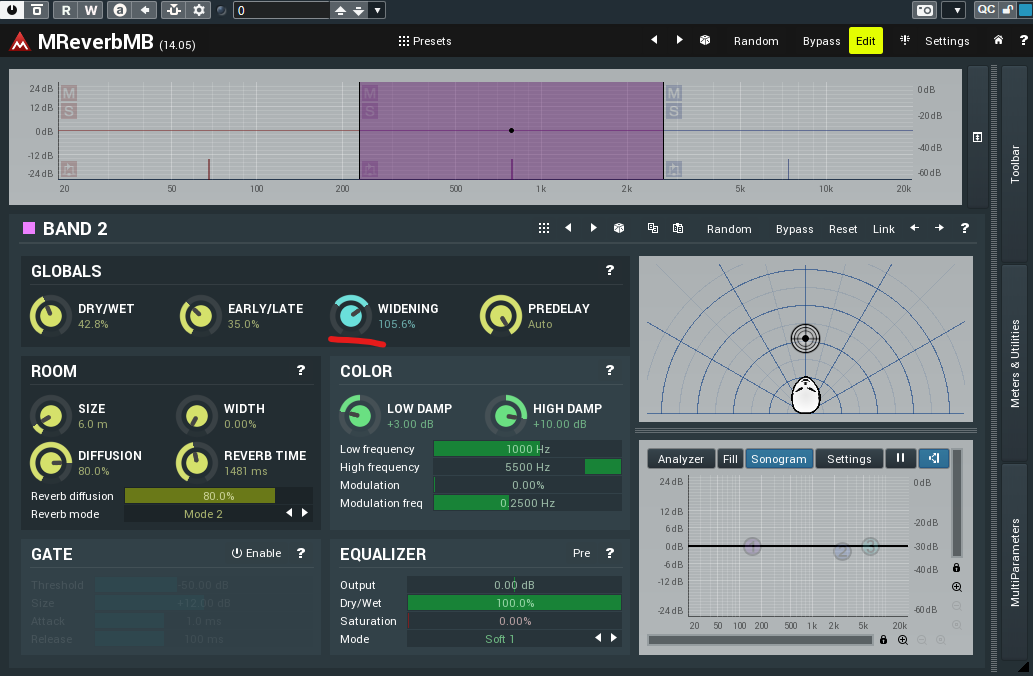 Мудрить ничего не надо) Если бы меня попросили что-то такое исполнить, я бы просто повесил эквалайзер в режиме Mid-Side, типа ProQ3 или GlissEQ. Будет сколько хошь полос для расширения или сужения стерео-базы.Братцы, а встречал ли кто ревер с кроссовером на борту и независимой регулировкой ширины панорамы каждой полосы...?