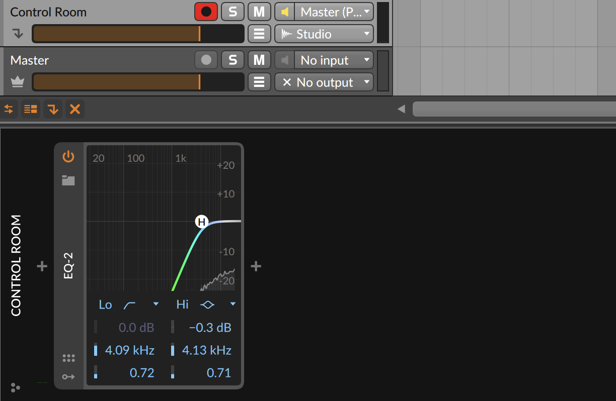 Сделайте Effect Track. В I/O Routing этой дорожки на входе ставим Master (POST), na выходе Studio. Активируйте запись на этой дорожке. На Mastere на выходе сделайте "No output".
