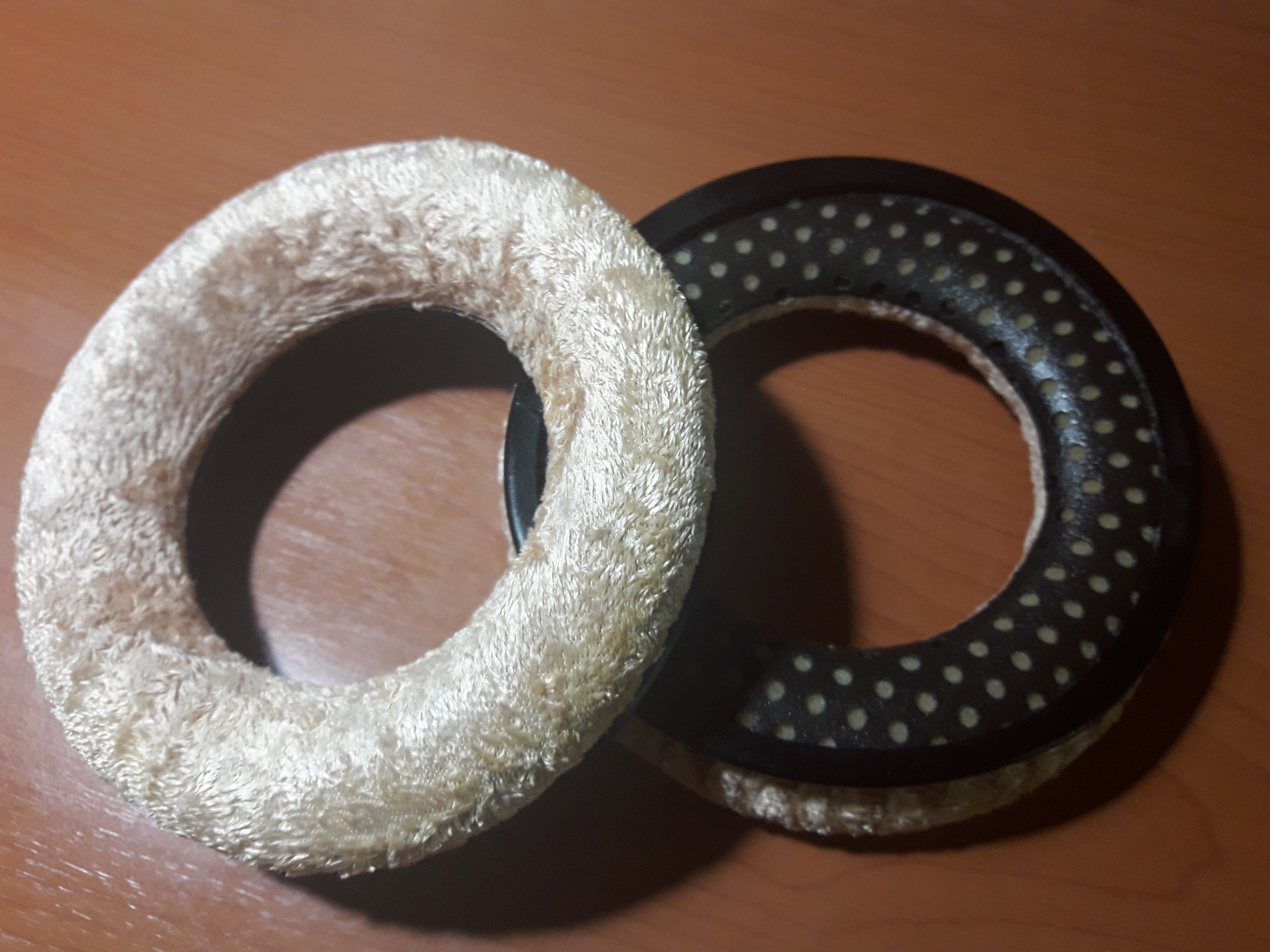 Сегодня постирал уже в который раз амбушюры от 770-х, но они уже темные не красивые, не отстирываются, замочил секунд 30-40 в Белизне, водой не разводил, думал станут светло серые как были, а получились золотистые, вот прикол. На фотке так не видно конечно всего блеска. но красивые.