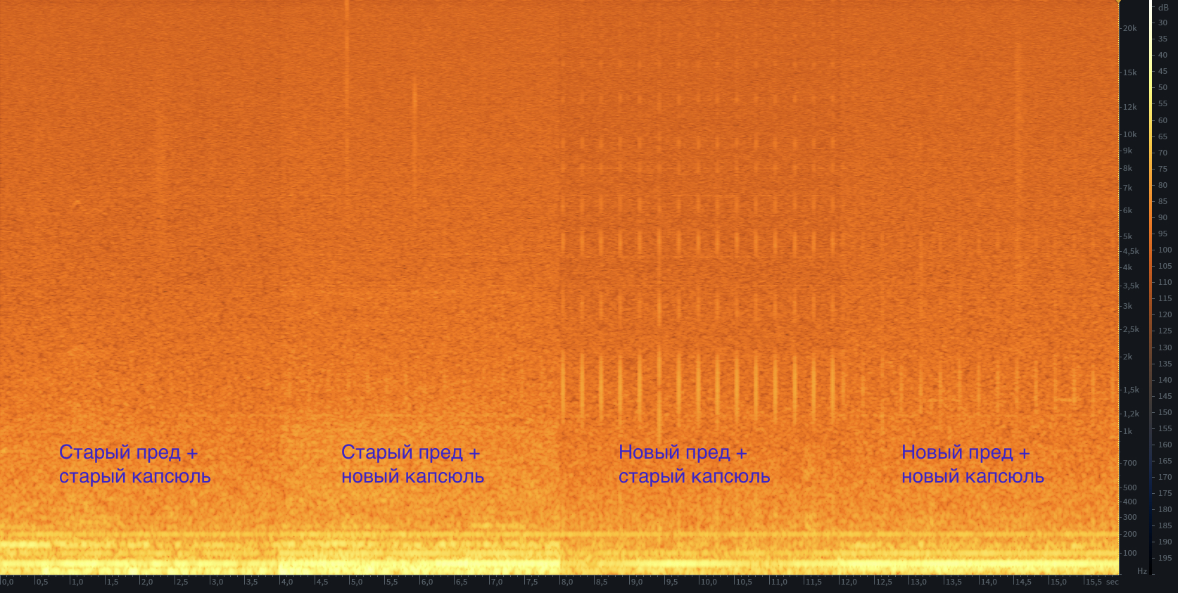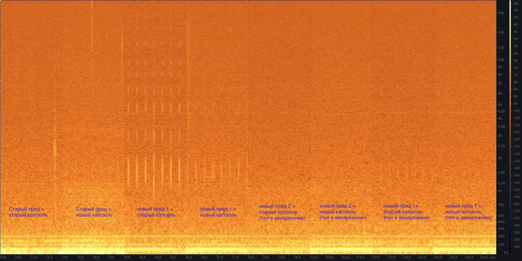 Забрал сегодня в СДЕКе пару новых (приехали с завода через OZON). Преды сделаны в мае 2022 года, капсюли кардиоиды сделаны в сентябре 2019 года. Старые в начале 2000х покупались на митинском радиорынке, в паспорте не указан год, зато подробно расписана схема и перечень элементов. И вот простой такой тест - воткнул в косу бебифейса 1го поколения (чувств. на 36) 4 комбинации:опять же по отзывам новый пред менее шумный