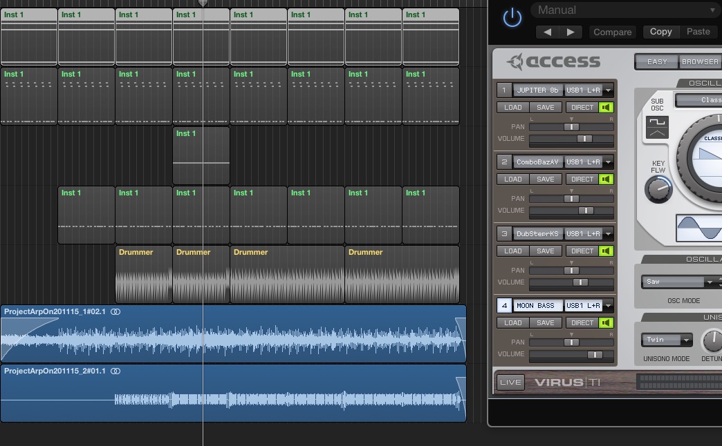 а вот и ответ). Используйте по миди. Ну и звуковую нормальную раздобыть, ибо вирус в качестве звуковой юзать это изврат.