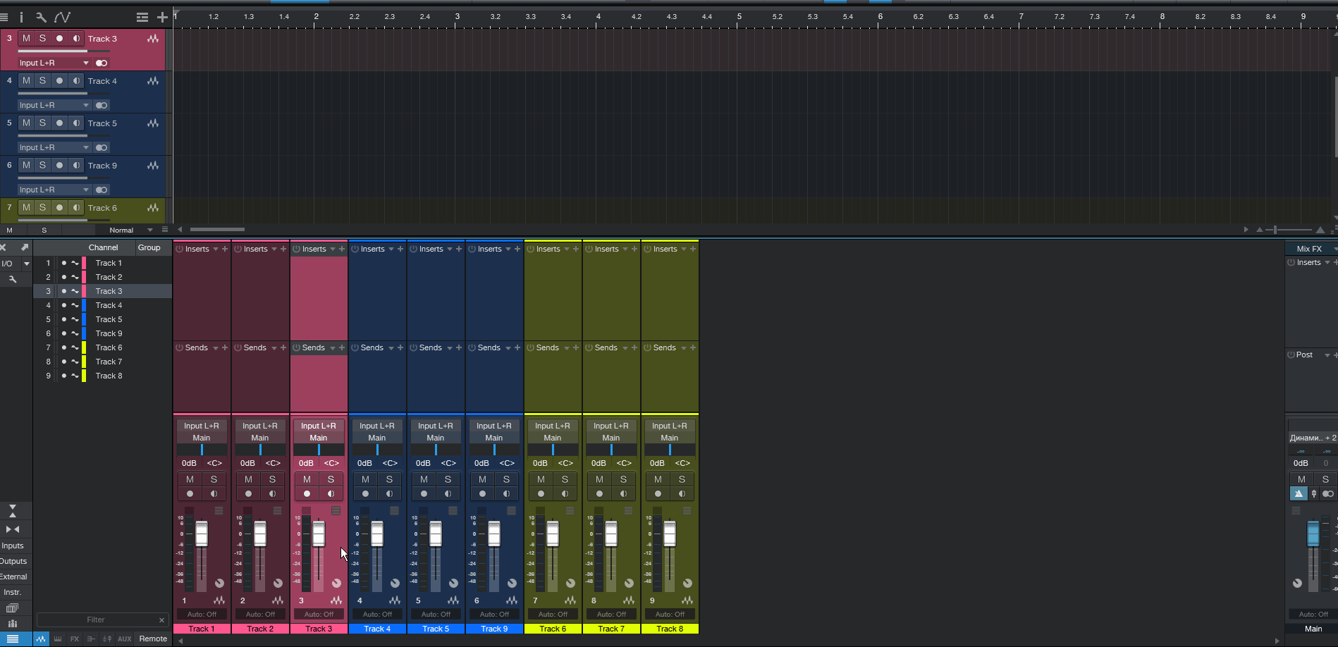В сампле например,первый и последний канал щёлкаешь через shift и опускаешь всю "араву" на сколько надо и каналы с автоматизацией тоже опускают автоматизацию. А тут придется смотреть кто в мэин идет кто не в мэин и через ctrl это выделять а каналов 170 ..какое то занятие..не очень.)