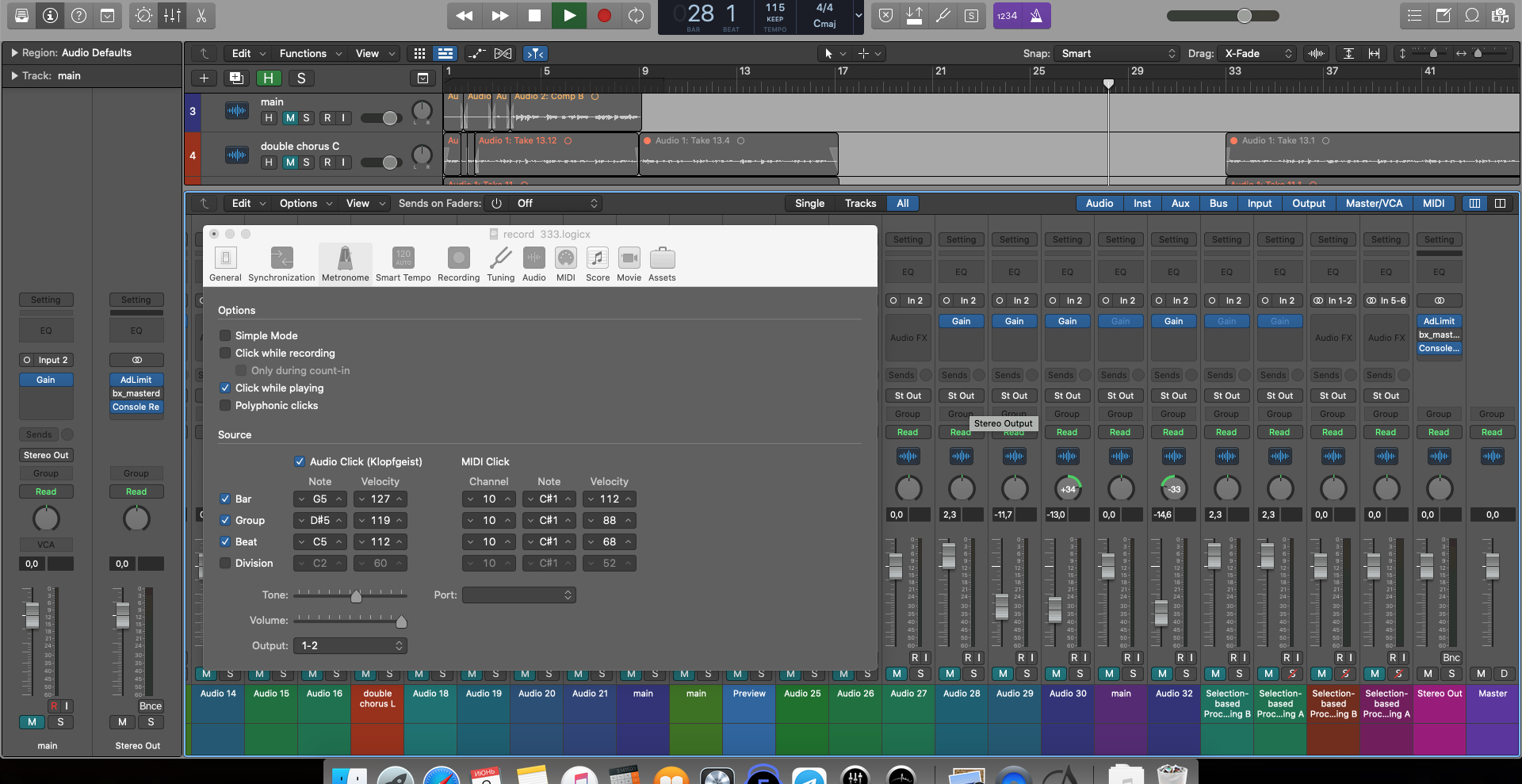 Здравствуйте, помогите пожалуйста решить проблему. В проекте перестал работать метроном во время воспроизведения проекта. Все галочки стоят вроде правильно, но звука просто нет. Так же пропал сам инструмент Click(klopfgeist), который автоматически появляется при создании дефолтного проекта. При создании нового инструмента klopfgeist, он конечно же не подхватывает горячую клавишу K и никак с ним не взаимодействует.