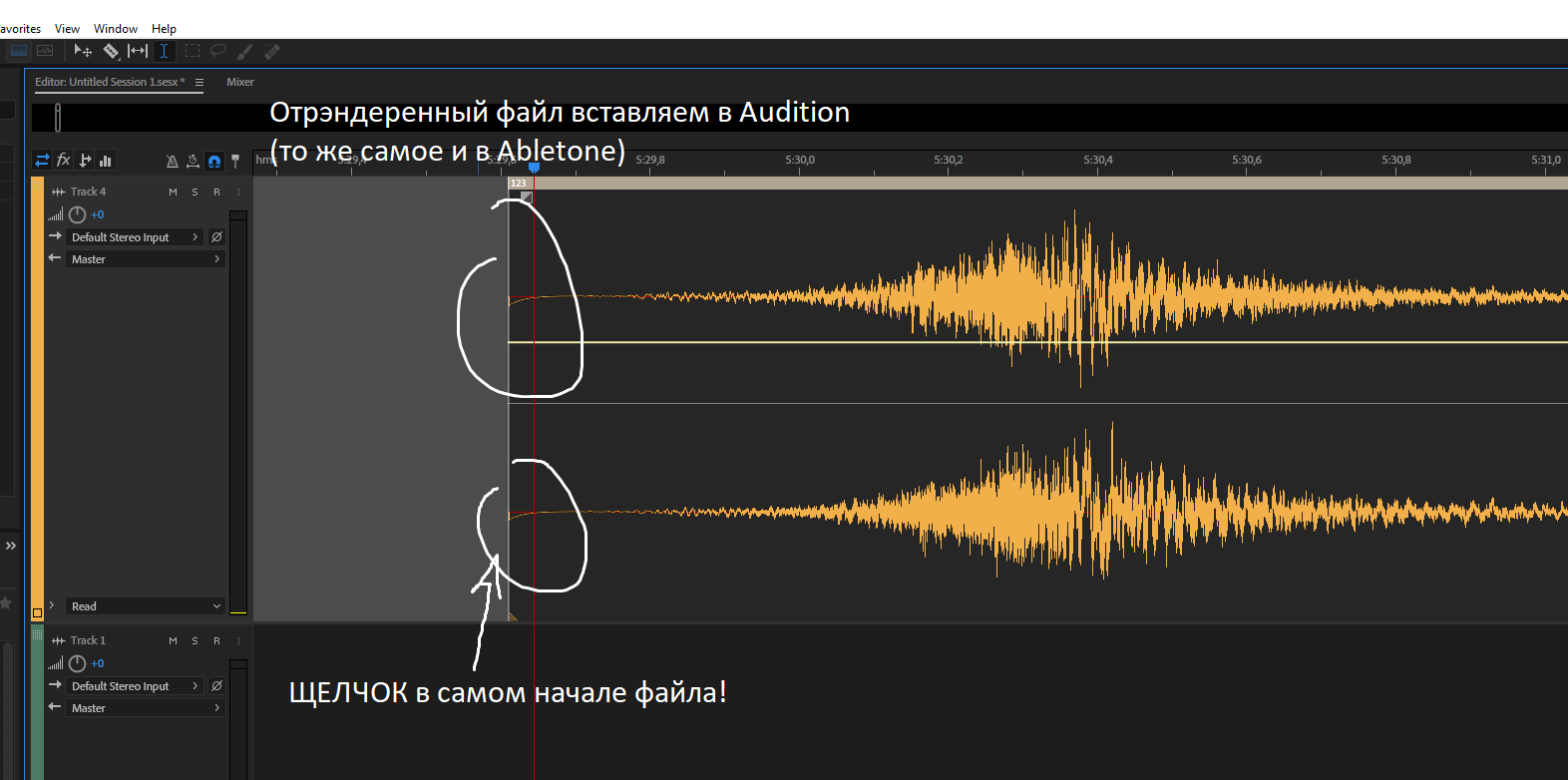 Щелчок появляется после рэндера там, где никакое аудио ещё не началось даже!