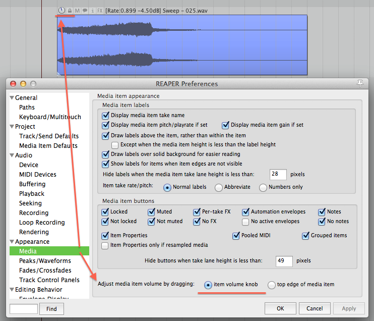 Как прилепить ручку Gain к item, ну и чтобы она по умолчанию была и появлялась на отрезанных items?
