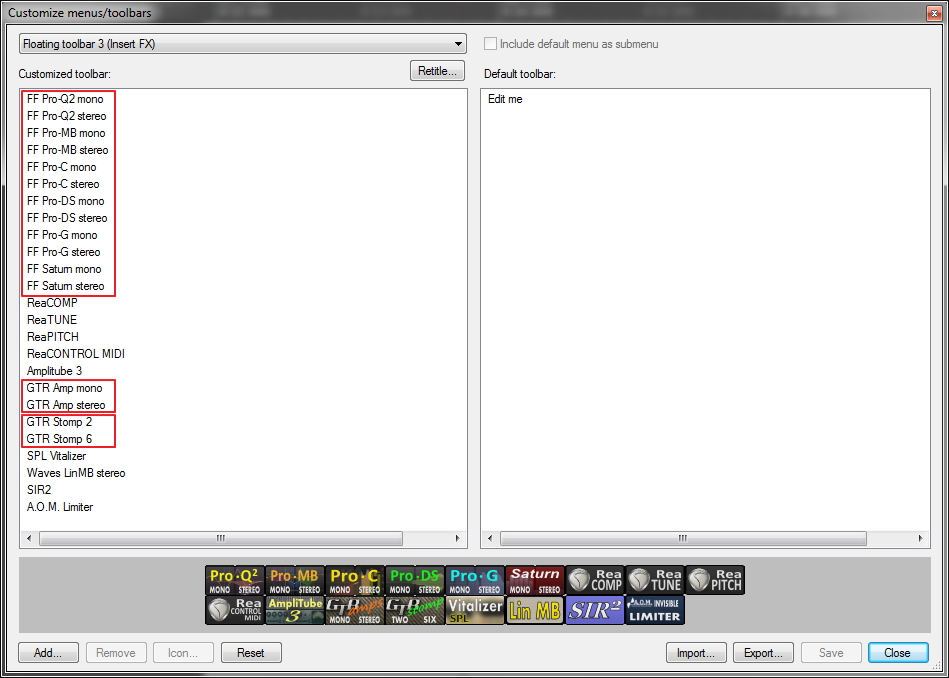 З.Ы. Чтобы всё было красиво с моно/стерео кнопками, экшны, отвечающие за вызов моно и стерео версии плагина, в тулбаре должны обязательно располагаться рядом, в последовательности моно, потом стерео: