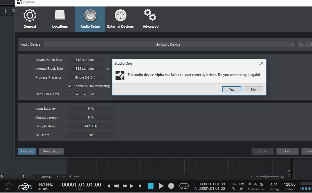 Попробовал все сделать. Снял там галку. При запуске проекта это окно перестало появляться. Но все равно эти баги происходят это когда мне надо открыть браузер хром,там что то поделать, или какое нибудь окно открыть с диска. То звук пропадает. Приходится опять эту галку включать чтобы звук появился. Подобное происходит на скрине-Что за байда со звуком происходит не понятно. По ходу мне надо вторую внешнюю звуковуху покупать. Чтобы было отдельно для винды и для студии... Мне кажется какой то конфликт происходит, между реалтоком и Альфа.