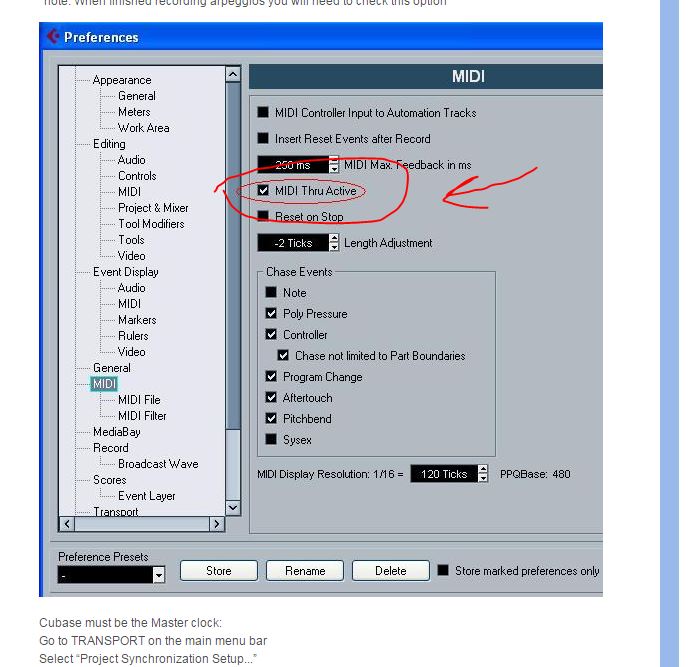 Я бы не советовал писать гитарное арпеджио напрямую в DAW, лучше записать его сначала в секвенсор Ямахи, а потом перекинуть в комп. Гитарные арпеджио это не только информация о сыгранных нотах, но и еще куча всякой информации, чтобы звук воспринимался похожим на игру реальной гитары. Да и вообще, проще такие гитарные пааа закинуть как аудио данные, а потом крути как хочешь. Благо в современных компьютерных секвенсорах работа с аудио очень классно организована. Я тоже по-началу, по-старинке хотел все собрать в миди, потом конвертить в аудио, обрабатывать и т.д. Но повозившись и поспрашивая кучу вопросов на зарубежных форумах, понял, что этот вариант слишком трудоемкий, требует каждый раз переключить кучу настроек и в компе и в ямахе. Допустим, тот же вст эдитор он вносит изменения только в параметры синта (да и то не все), в кубейсе же ничего не изменяет и не настраивает, а это неправильно, если говорить о "полной интеграции" как хвастается Ямаха. Так, чтобы записать 1 песню уйдет полдня, только чтобы 100 раз все настройки переключить туда и обратно.
