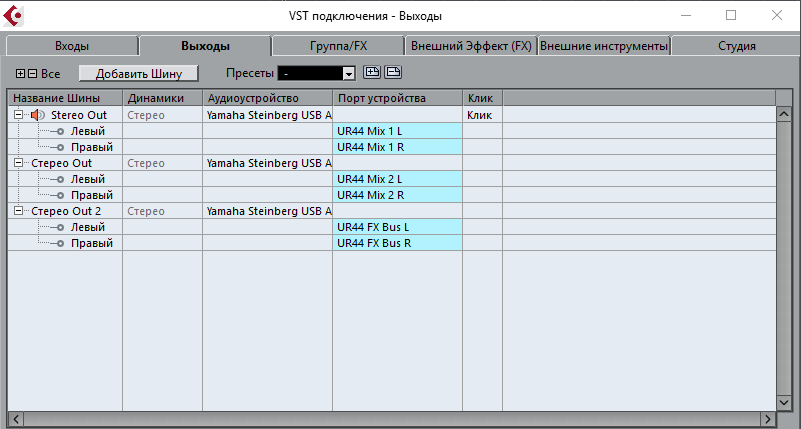 Я просто выложил все что имеет UR 44/ Первая и есть мастер шина. Вторая шина, видимо посыл для какого то мониторинга, третья UR 44 FX buss. Скорее всего, эта функция ревербератора, для удобства вокалиста, инструманталиста, что бы в уши шел не сухой звук.