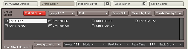 и проверить, чтоб во всех группах сэмплы были растянуты на весь диапазон велосити. можно нажать кнопку selected groups only в mapping editor