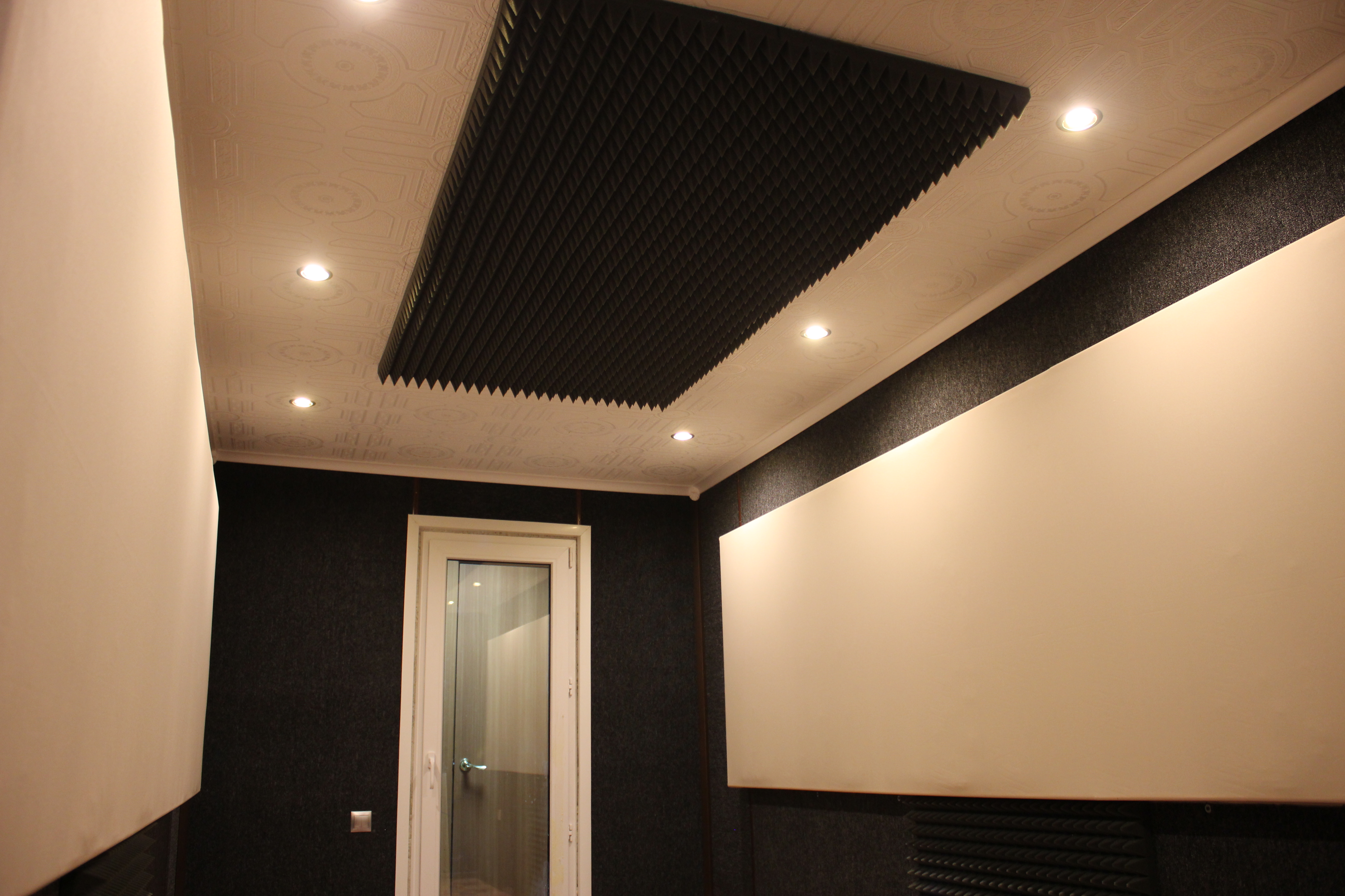 Приветствую. За перфорированной плитой - подушка из поглотителя, а далее уже гипс. смысл такой конструкции заключается в создании нейтральной акустики в диапазоне СЧ и выше. т.е. часть звука рассеивается за счет дугообразной поверхности. другая, та что проходит через перфорацию или сквозь экран - поглощается.