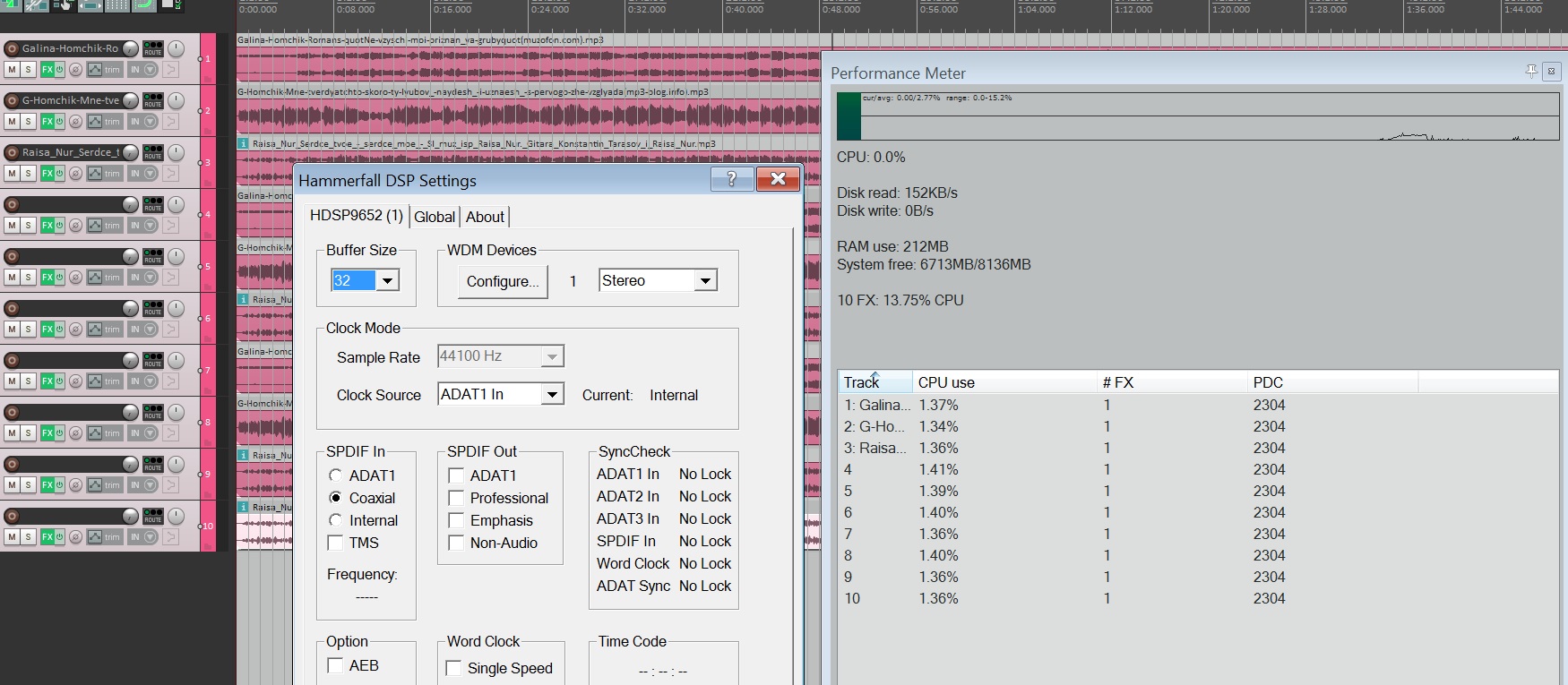 В моём варианте 2 машины на i5 и i7 поведение везде одинаковое оптимизации все сделаны и проверенны dsp чекером .... Карты m audio 192 roland v 100 win 7 64