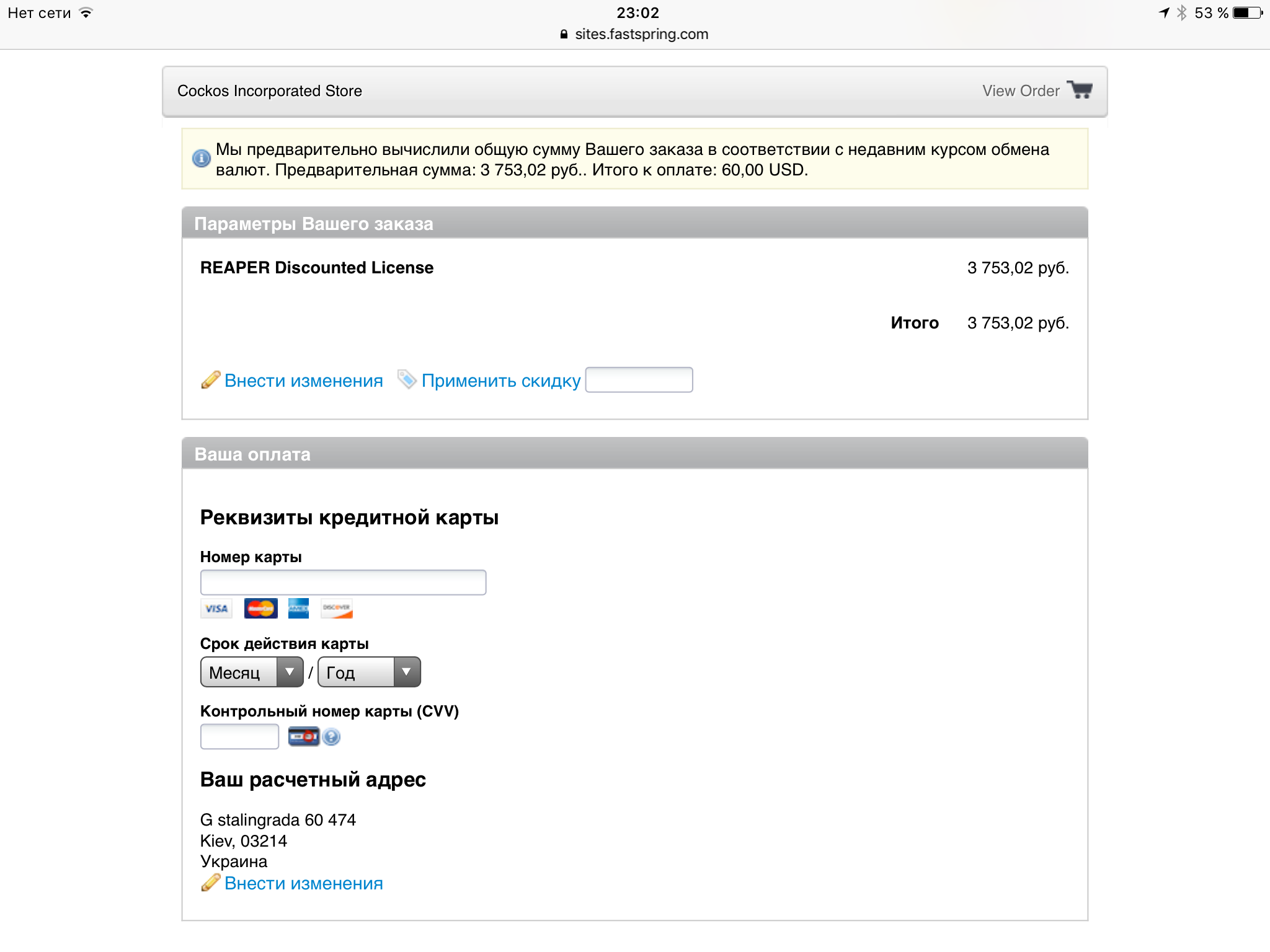 Тоже на днях буду брать reaper (триалка подходит уже к концу), подскажите такой момент. Если выбираете другую страну при покупке, вы ее выбираете только для оплаты? В самой лицензии к риперу (я так понял риперовцы личный кабинет не сделали) не будет ли указана эта страна при покупке? Не хочу чтобы потом возникло проблем с поддержкой софта