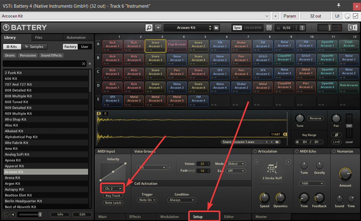 borisuperful Well-Known Member 31 Янв 2013 2.017 1.158 113 4 Сен 2020 #31 Сделать маршрутизацию миди каналов, в батарейке в Setup поставить канал для ноты. По умолчанию all channels Больше 16 не сделать, как входов, так и выходов. Только новой батарейкой