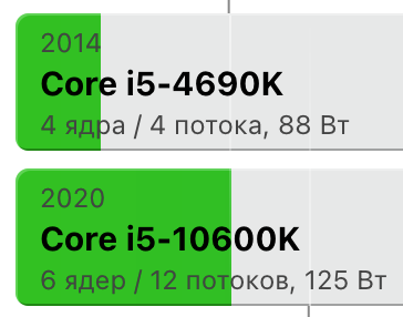 Ну, во-первых, видео рендер, это не то место, где лучше всего тестить производительно процессора, а во-вторых, смотря где смотерть. Техникал сити показывает совокупный процент соотношения производительности. На 4690к я мог весить раз в 8 меньше плагинов, и в 150% - этот результат ну никак не укладывается. Опять же, если сравнивать видео, 1060/2060S, сехникал сити покажет около 50-60%, только вот в некоторых играх старая паскальная видяха давала мне 40-50 кадров, а 2060s выдавала 70-80, а в некоторых, прирост был втрое больше. И это при всё при том, что я новый комп, собрал примерно в ту же стоимость, что старый) Вторичка естественно. Т.е. продав старый купил новый слегка доплатив)