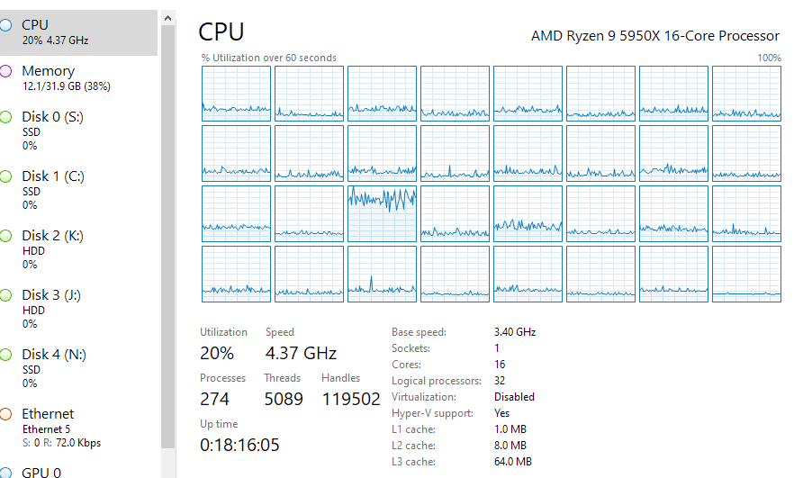 (!) Но это не все. Обратил внимание, что значительно поменялось в лучшую сторону распределение нагрузки между ядрами процессора.