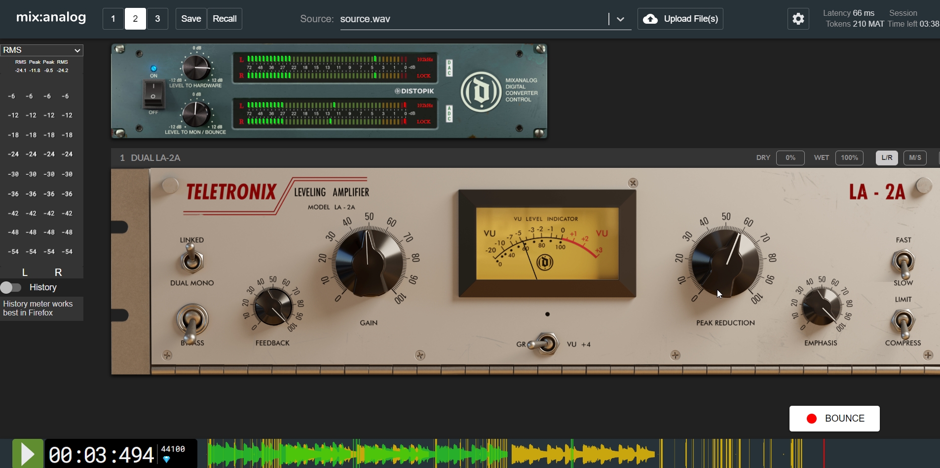"I emailed my source to my friend who owns two real LA2A (modern revision )"