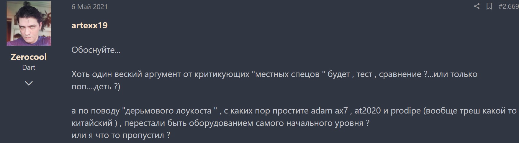Да вот хоть Зерокул писал например! Кстати это он вам отвечал)) Мнение Зерокула и других форумчан для меня более весовое, чем сетап вашего знакомого о котором я ничего не слышал. Видимо какой-то локал стар западный Таких очень "интересных" звёзд на западном небосклоне пруд пруди. Я тоже долго фанател)) но потом, в один прекрасный день послушал их записи и чуть не блеванул, потому что качество ниже плинтуса.От кого?))) а я слышал что норм
