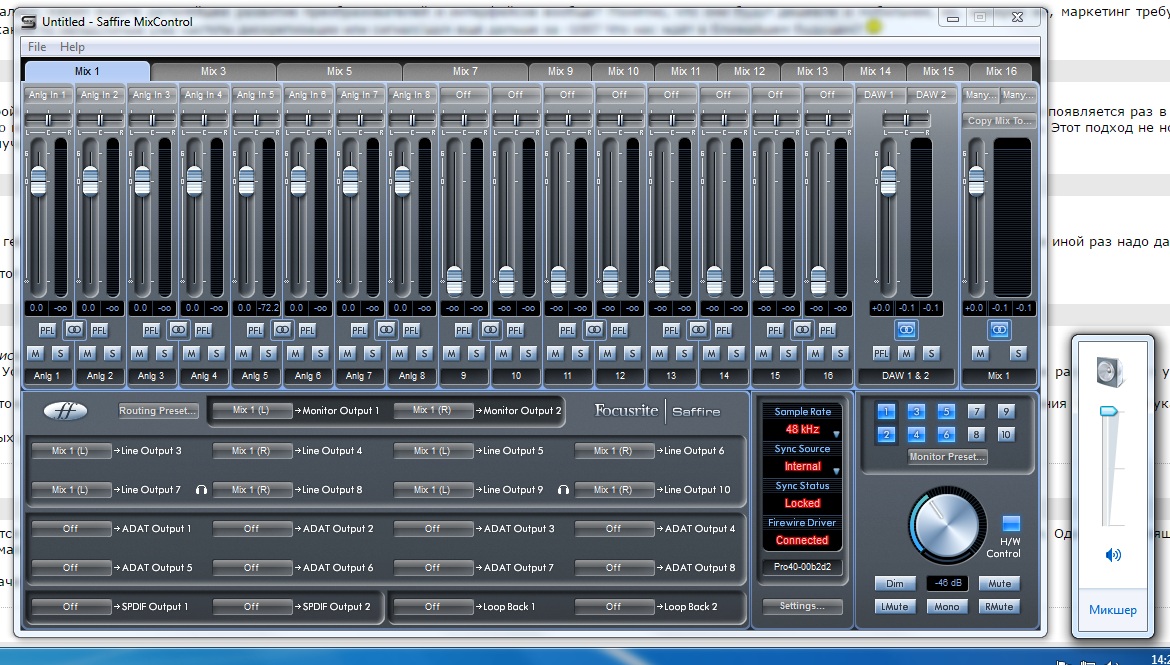 объясню, как смогу. А если что, то допишу, что будет необходимо. Проблема в следующем. Как-то раз, звук стал в три раза тише! Просто стал тише и все. Проверил Микс контрол - там все в порядке. Проверил микшер громкости виндоус - все в порядке. Посмотрел тыльные части моников - все в порядке. Но звук стал в 3 раза тише. Переустановил винду, она уже изрядно тупила. Думал проблема уйдет, но нет. Если вы мне не поможете, буду с гуглом транслитом писать в службы поддержки Focusrite и KRK. Прикреплю скриншеты и фото, с крутилками, на которых когда-то было все в полном порядке, нежели сейчас. В чем может быть проблема?