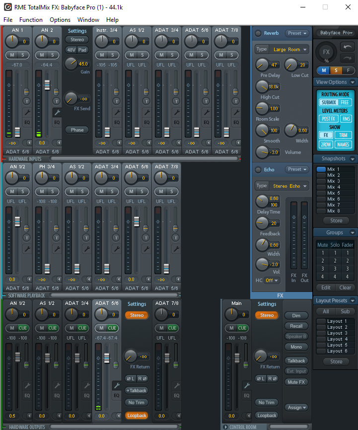 К аналоговому входу 2 через переходник XLR подключена петличка, все системные и несистемные звуки, в том числе микрофон, отправлены через loopback в DAW (см. скриншот) - когда только подключил и настроил, уровень громкости микрофона был где-то -20 дб, и так как микрофон чувствительный, на самой карте и в ТМ была хорошо видна индикация сигнала, и, соответственно, уровень получаемого сигнала был подходящий. Сегодня, при попытке провести конференцию, обнаружил, что сигнал практически отсутствует (увидеть на индикации можно, только если клацать по капсулю пальцем), настройки ТМ не менялись.