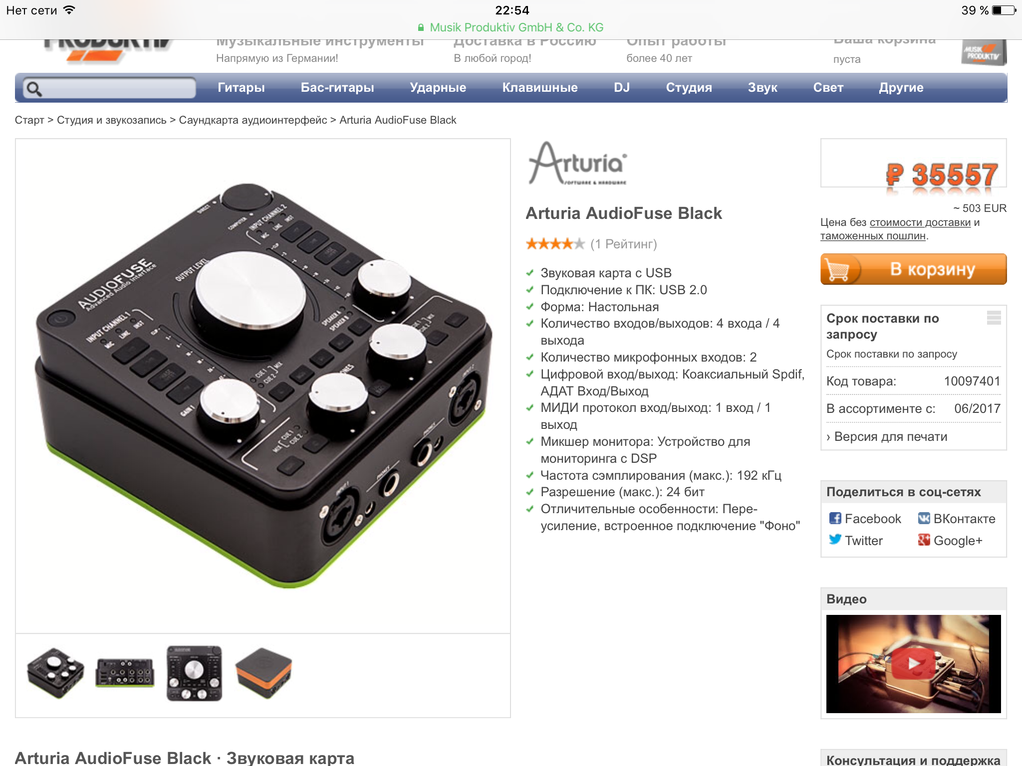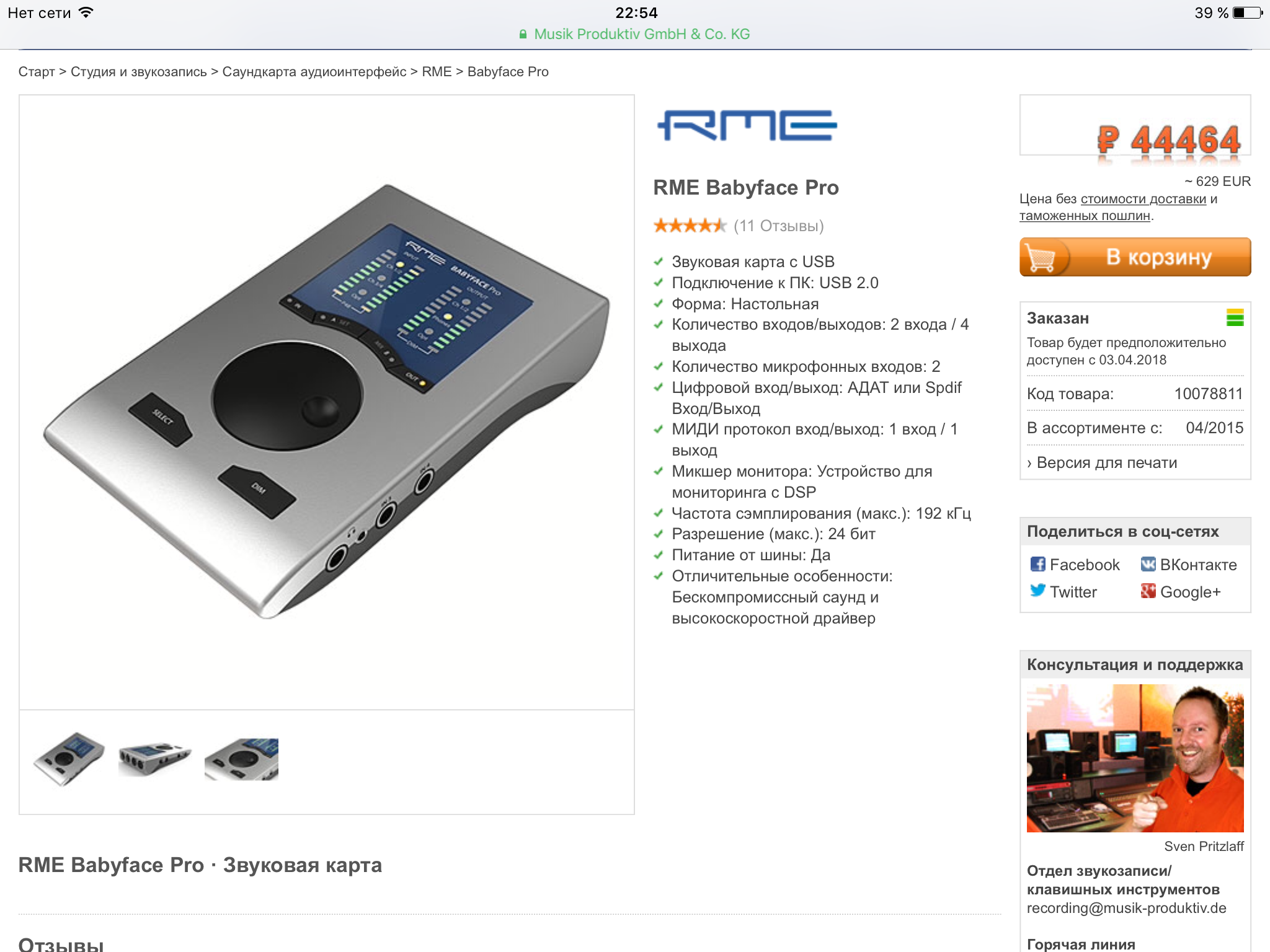 На Мьюзик Сторе, Томане, Мьюзик Продуктиве за продукцию RME гнут цены сейчас, на наших сайтах зато ценник упал, от 41 т.р. теперь. Поэтому заказал тут.