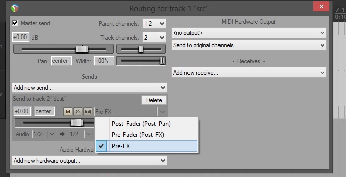 чтоб посыл был pre-FX. Иногда так надо, без обработки, но после федера))А смысл тогда в префейдерном режиме?