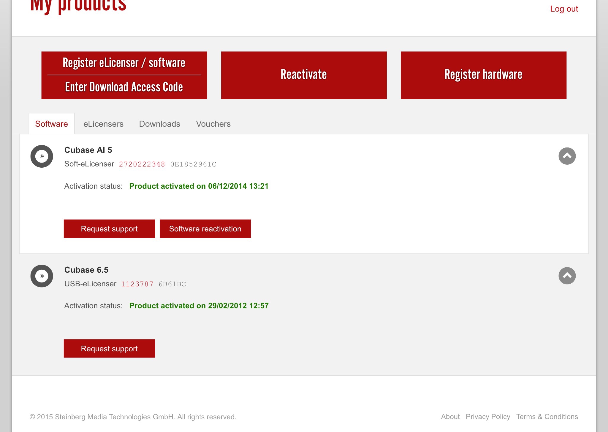 @dimapet, Вот судя по скрину из my products На моем аккаунте my Steinberg зарегистрирован Cubase 6,5 на eLicensere 1123787.