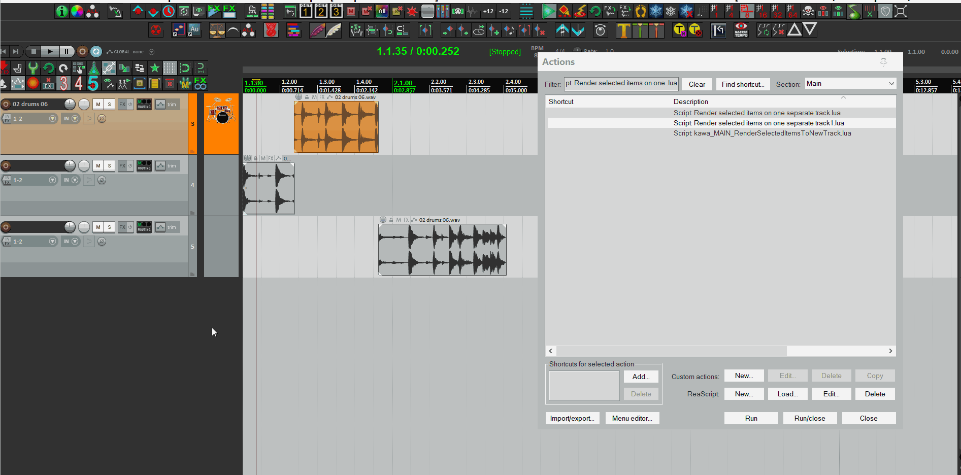 Нужен скрипт "Split selected item under mouse cursor and select left". Обычный экшен "Item: Split item under mouse cursor (select left)" есть в стандартном списке экшенов, но он не подходит, т.к. мне нужно нужно резать ВСЕ выделенные айтемы на разных треках по линии, где находится курсор мыши, и при этом во всех разрезанных айтемах оставлять выеленную левую часть после разреза.
