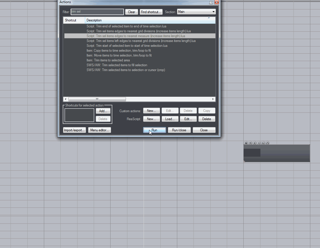 Подскажите, есть кастом или скрипт выделяющий на активном треке один ближайший к курсору(не касающийся его) справа айтем?