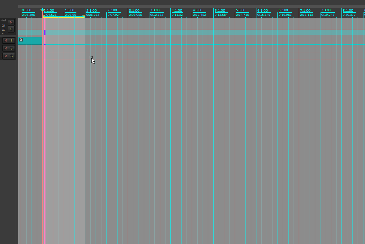…быстрая установка границ выделения в процессе воспроизведения Ctrl+Click — ставится левый локатор, Alt+Click — соответственно правый, а курсор воспроизведения играет в пределах этих локаторов.