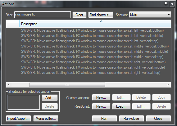 Подскажите, можно ли при помощи SWS команд или как-нибудь еще поместить активное "float" окно плагина в центр экрана?
