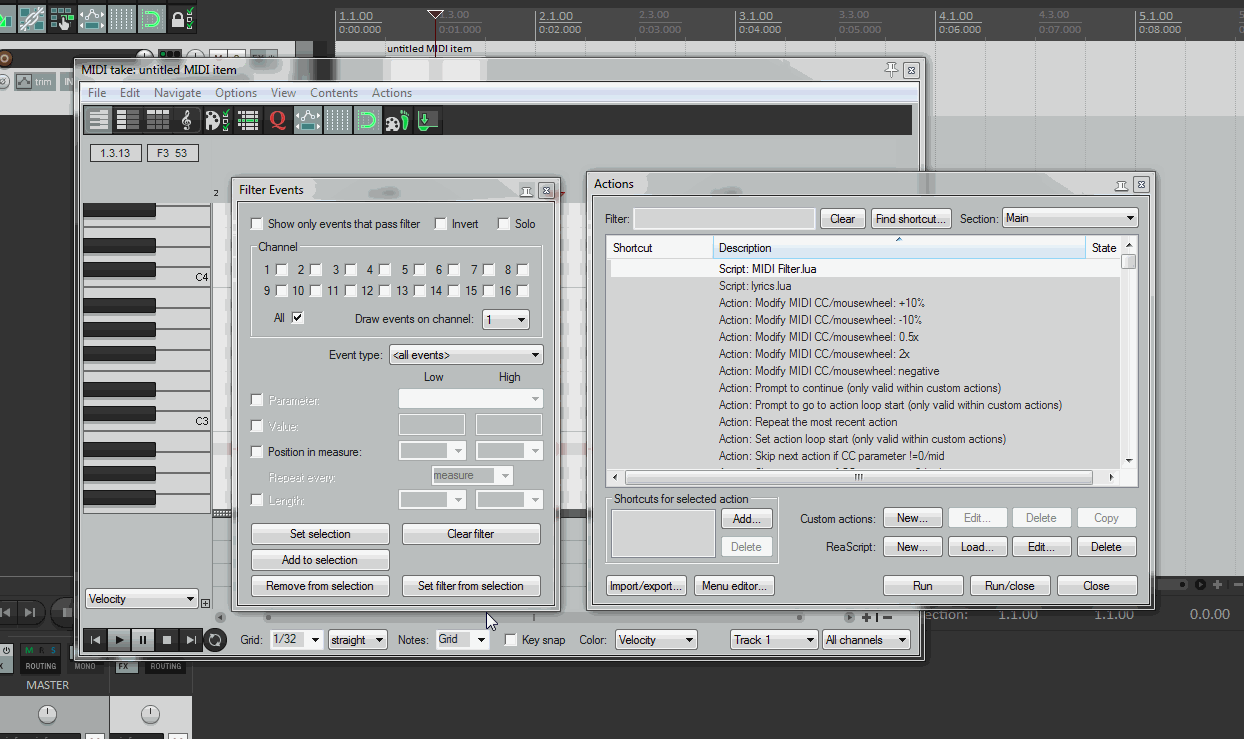 r.PreventUIRefresh(-1) r.Undo_EndBlock('Filter Events - Type Note, Note, Use piano keys', -1)