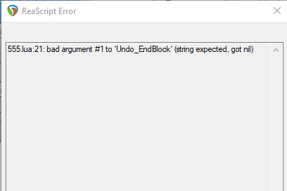 Сделал все как вы написали,скрипт работает но выдает вот такую вот ошибку.555.lua:21: bad argument #1 to 'Undo_EndBlock' (string expected, got nil) Снимок.PNG
