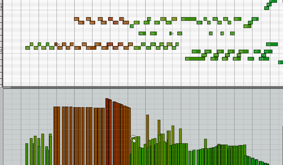 А вот когда используешь сочетание клавишь CTRL+SHIFT и активируется режим Linear ramp CC events ignoring selection, все просто летает.
