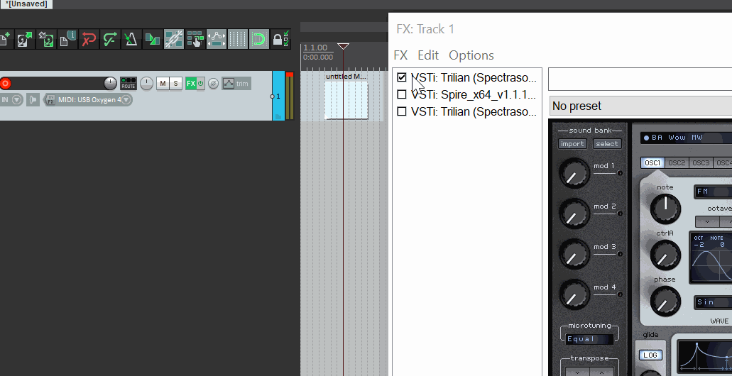 т.е. Вы сегодня впервые в Рипере подключили в инсерт Спектрасоникс и удивились, что в отличии от Битвига, миди-клава не отсылает сигнал на синт. Кстати, а миди-активность при нажатии клавиш, Вы наблюдаете на индикаторах трека?