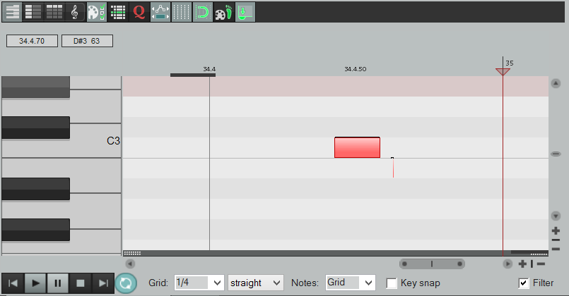 А вот в МИДИ-эдиторе так не получается. Не дает Рипер уйти скоролом за пределы границы видимости плей-курсора.