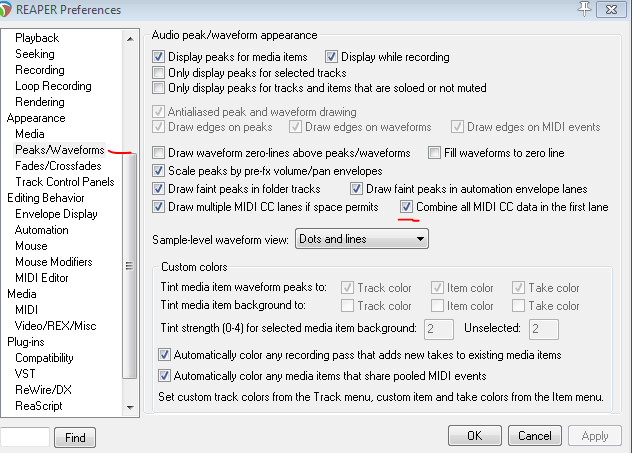 вопрос к тем кто обновился до финальной 5.75 - как теперь в тейке для миди отключить отображение велосити ?