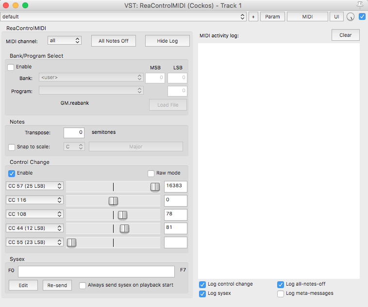 @Broojacker, вам подойдет встроенный в рипер reacontrol midi js (но там можно только 5 midi CC параметров прописывать одновременно). Втыкаете плагин в инсерт перед VST и в путь