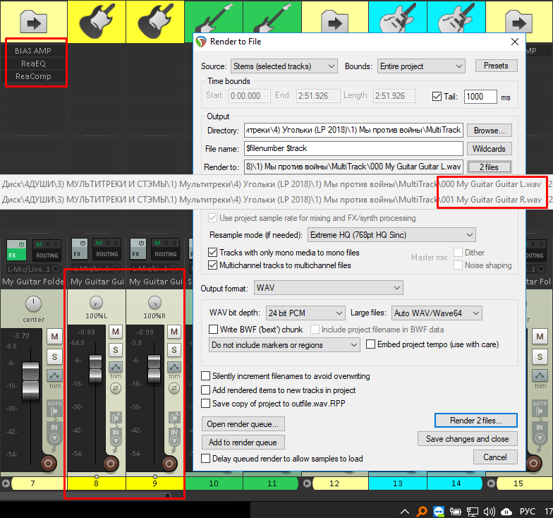 Как заставить рипер что бы при рендере стемов треки выгружались обработанными эффектами на папке, а не чистые DI?