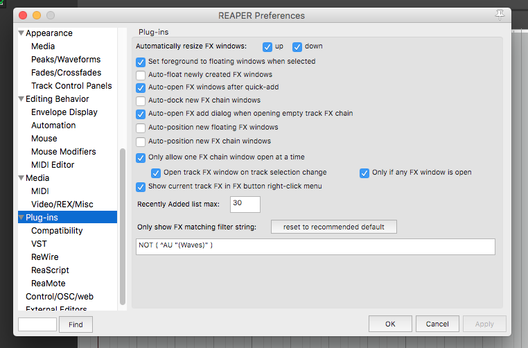 Есть ли настройка в рипере типа auto-hide plug-in windows из аблика? чтоб при выборе трека, показывать инструмент текущего трека.