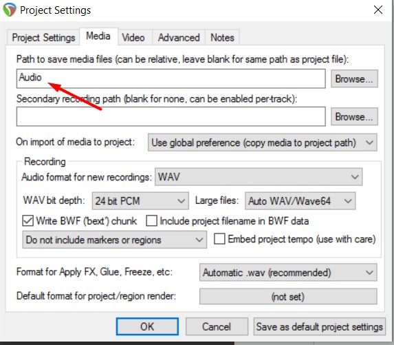 Я папку Audio file в проджект сетинг прописал и сохранил как дефолт.Но эта папка появляется только когда идет запись аудио на трек,но когда я аудио не пишу,то она не создается.
