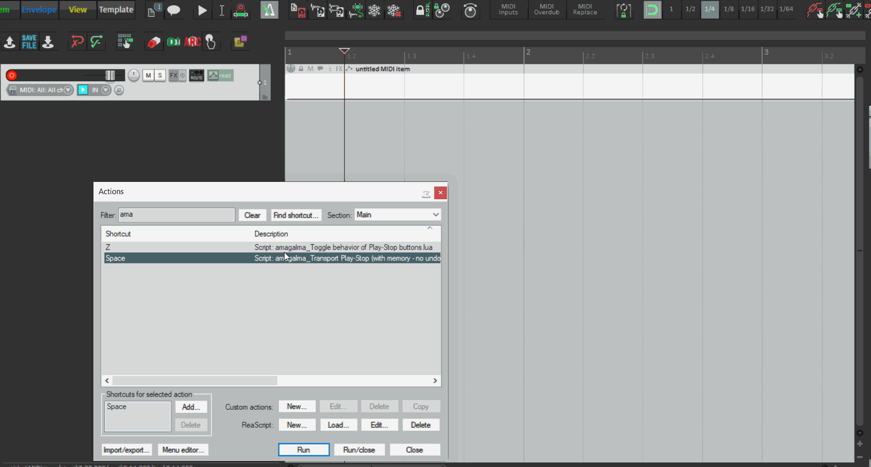 Ему нужно вот что, если я правильно понял - назначено на пробел "плей-стоп", он им пользуется и в какой то момент надо сменить на пробеле экшен и вот тут то что ему нужно, клац по скрипту (по любому другому хоткею) и на пробеле уже не "плей-стоп", а "плей-пауза" назначена, потом через какое то время опять клац по скрипту и на пробеле опять "плей-стоп".
