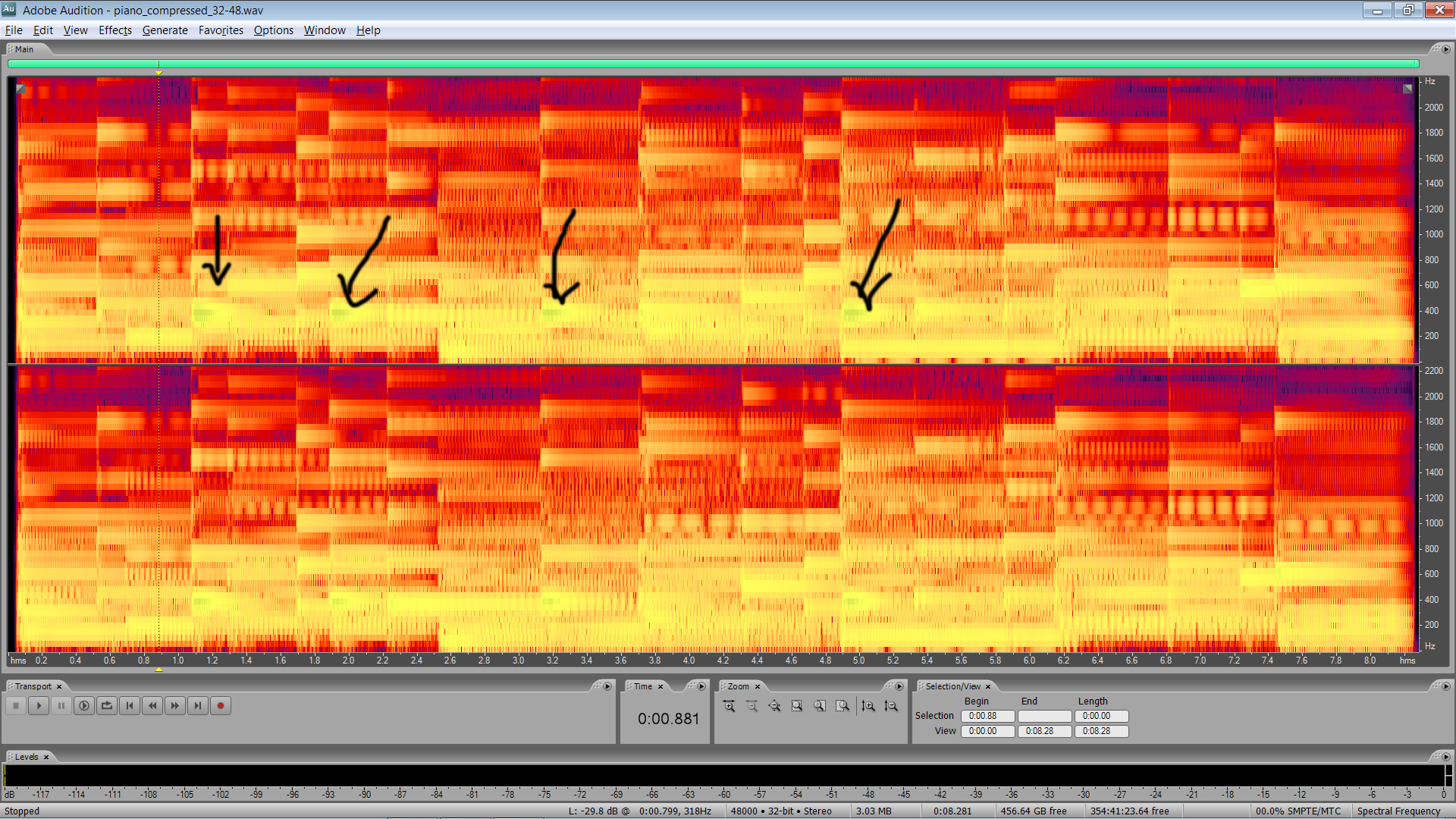 Вот, раскатал в блин с RMS -9. Там грязюка уже вылезает (может от mp3 исходника...), но это совершенно другого рода артефакты.